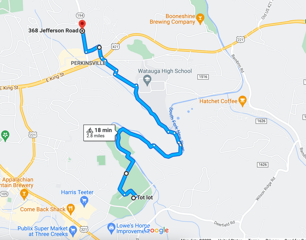 - 7:20 AM: Pick up point at New River Gymnastics, 419 Daniel Boone Dr.